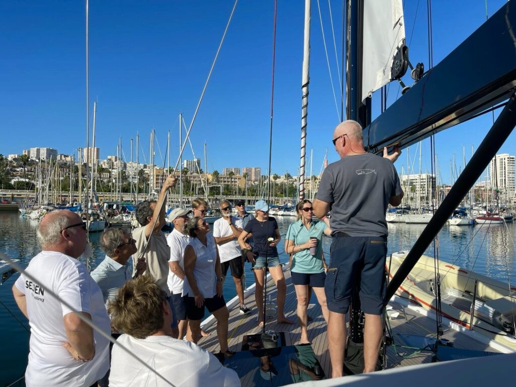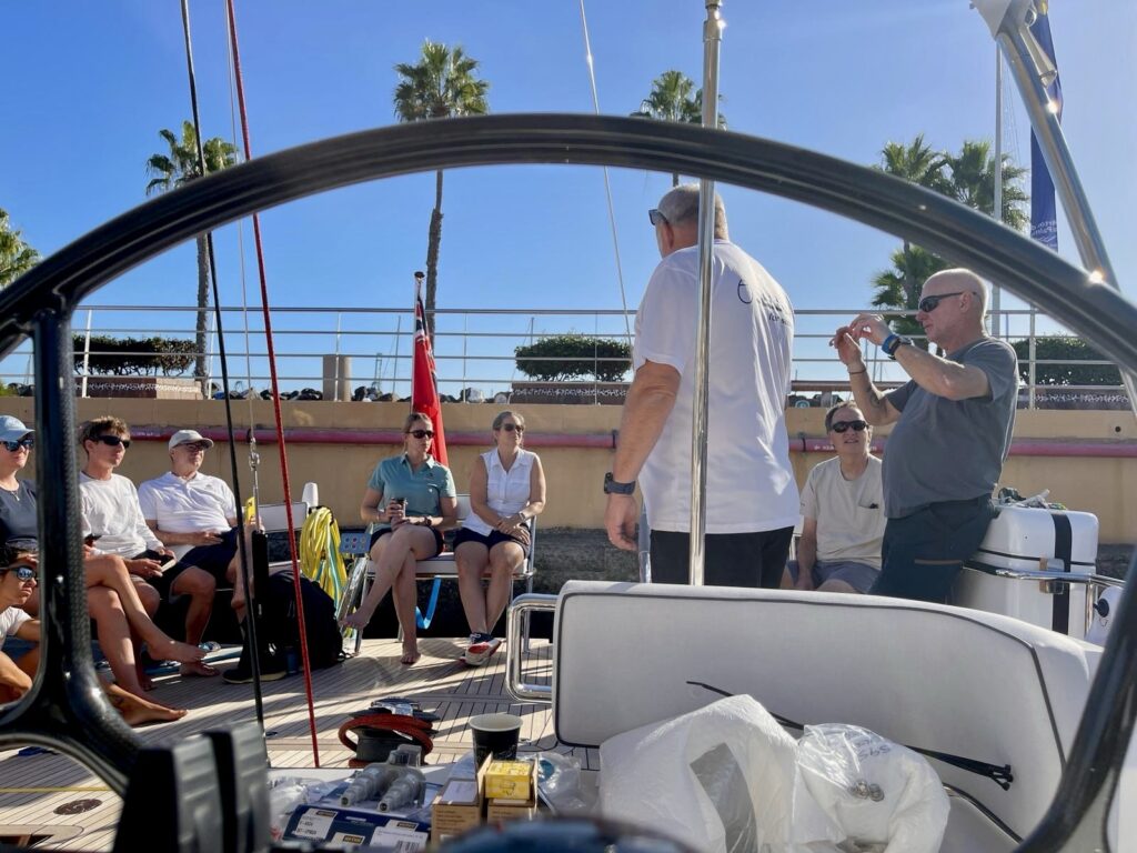 One of the highlights this week was the Seldén Masts breakfast seminar that was hosted on Welcome. All Oyster owners and crew were invited aboard to learn from the professionals on how to best prepare before departure, and then how to tune and monitor the rigging system while on passage. It was a very useful session and helped to highlight areas that might have otherwise been overlooked. The standing rig is the infrastructure that holds the sails (has tons of load on it), so its importance in safe passage cannot be overstated.