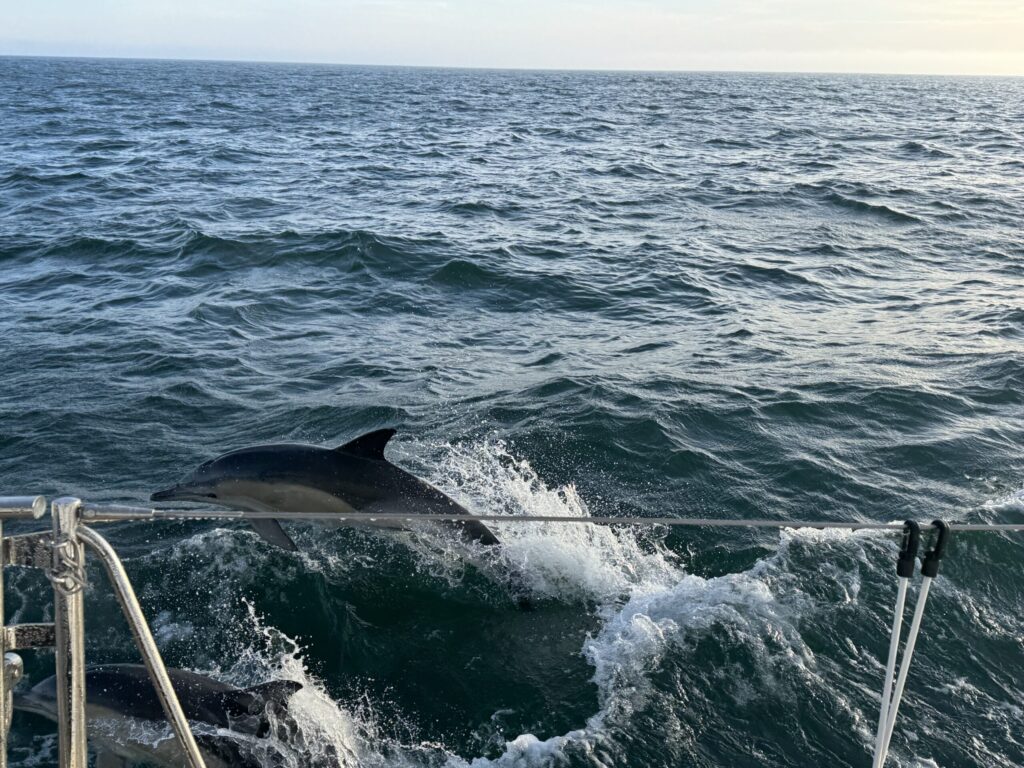 We arrived in Lisbon with sunlight bouncing off the water and dolphins racing the bow, about fifty of them leaping and twisting in unison, their silver arcs catching the light like a celebration. After days of watch rotations, wind shifts, and the constant rhythm of the sea, stepping onto the dock felt like time had momentarily slowed down. For me, it’s been a chance to restock, repack, and reset the galley before our next leg, the longest yet, from Lisbon to Las Palmas.