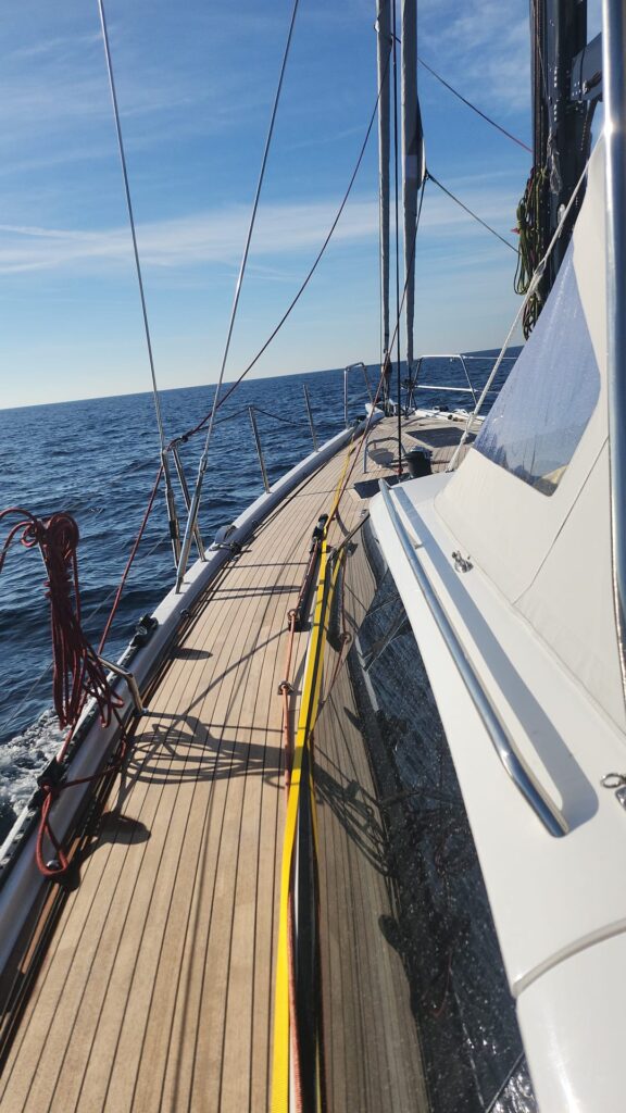 Our trip began back in Ipswich, where I did the first provisioning run, then to Guernsey where Welcome officially changed hands. Now, after five days at sea to Portugal, the galley feels broken in: the knives have found their drawers, the coffee mugs their rhythm, and the crew their favourites.