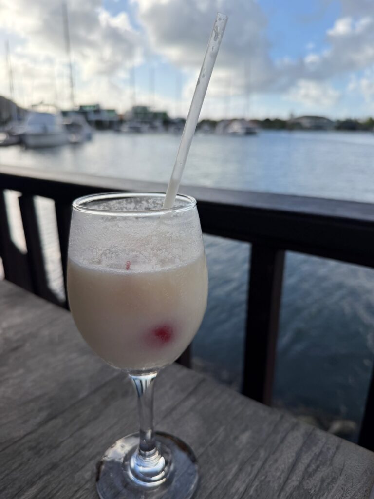 I decided to walk 40 minutes to a local beach for my first real swim in the ocean. The sand was soft and pale. The water was warm, salty, glorious. After 30 minutes or so, I walked back to the Marina and then: drinks.